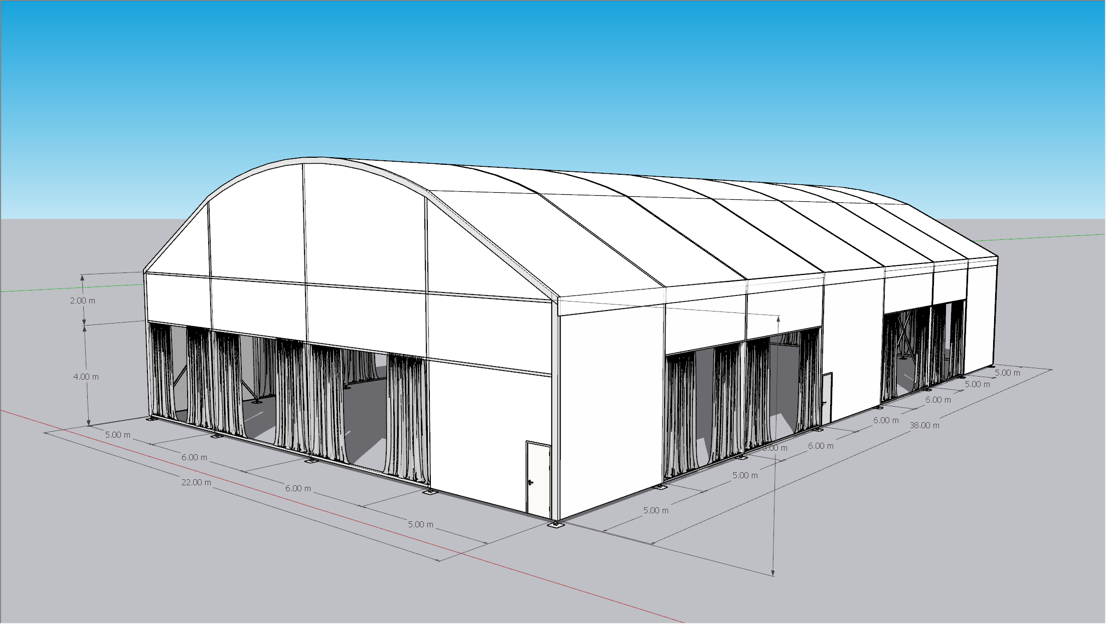 dinding | 1. berat fabrik PVC 650g/sqm putih duti, separa sekat, kalis air 100%, kalis api (DIN4012 B1, M2), kalis UV. 2. Kaca kalis letupan 3. Papan poliuretana 4. papan ABS |
