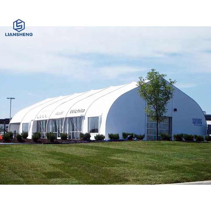 Penyesuaian Fleksibel untuk Keperluan Pelbagai Daripada saiz (lebar, panjang, ketinggian eave) kepada alat tambah berfungsi, khemah menyokong penyesuaian yang meluas. Pengguna boleh memilih antara warna fabrik yang berbeza (putih, kelabu atau warna Pantone tersuai) untuk memadankan identiti jenama atau tema acara; tambah aksesori seperti pintu bergolek, dinding kaca, lekapan lampu atau sistem lantai; dan juga menyepadukan sistem saliran atau tali angin untuk keadaan tapak tertentu. Fleksibiliti ini menjadikannya terpakai merentas industri—termasuk acara, pembinaan, pertanian (untuk penyimpanan tanaman), sukan (stadium sementara) dan bantuan bencana.