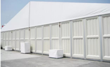 Dinding: Fabrik PVC 650g/sqm putih tugas berat, separa sekat, 100% kalis air, kalis api (DIN4012 B1, M2), kalis UV.